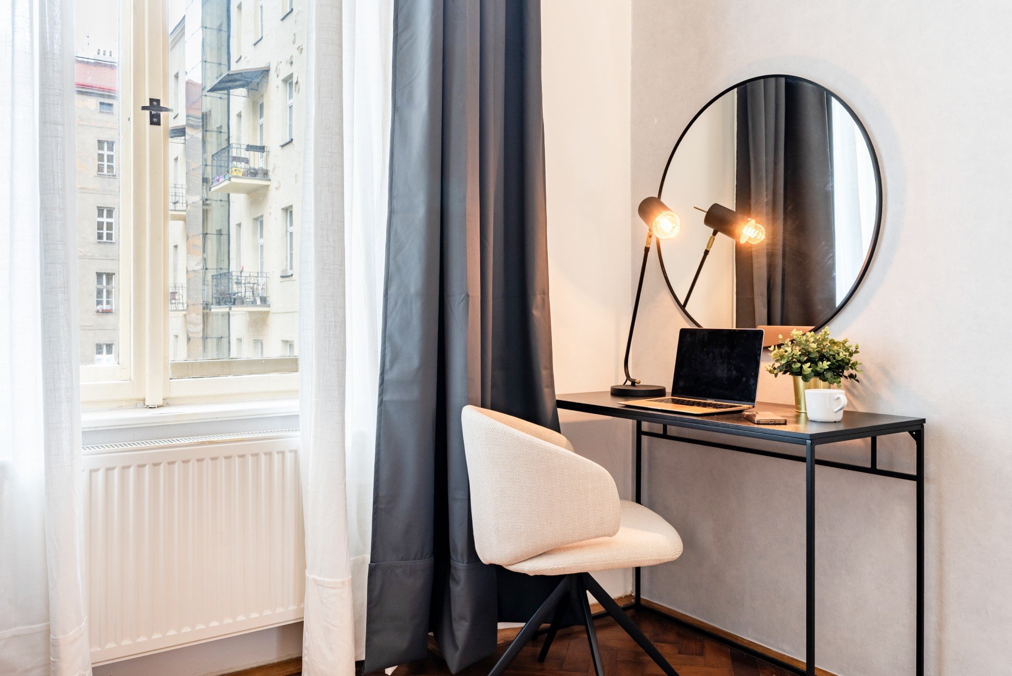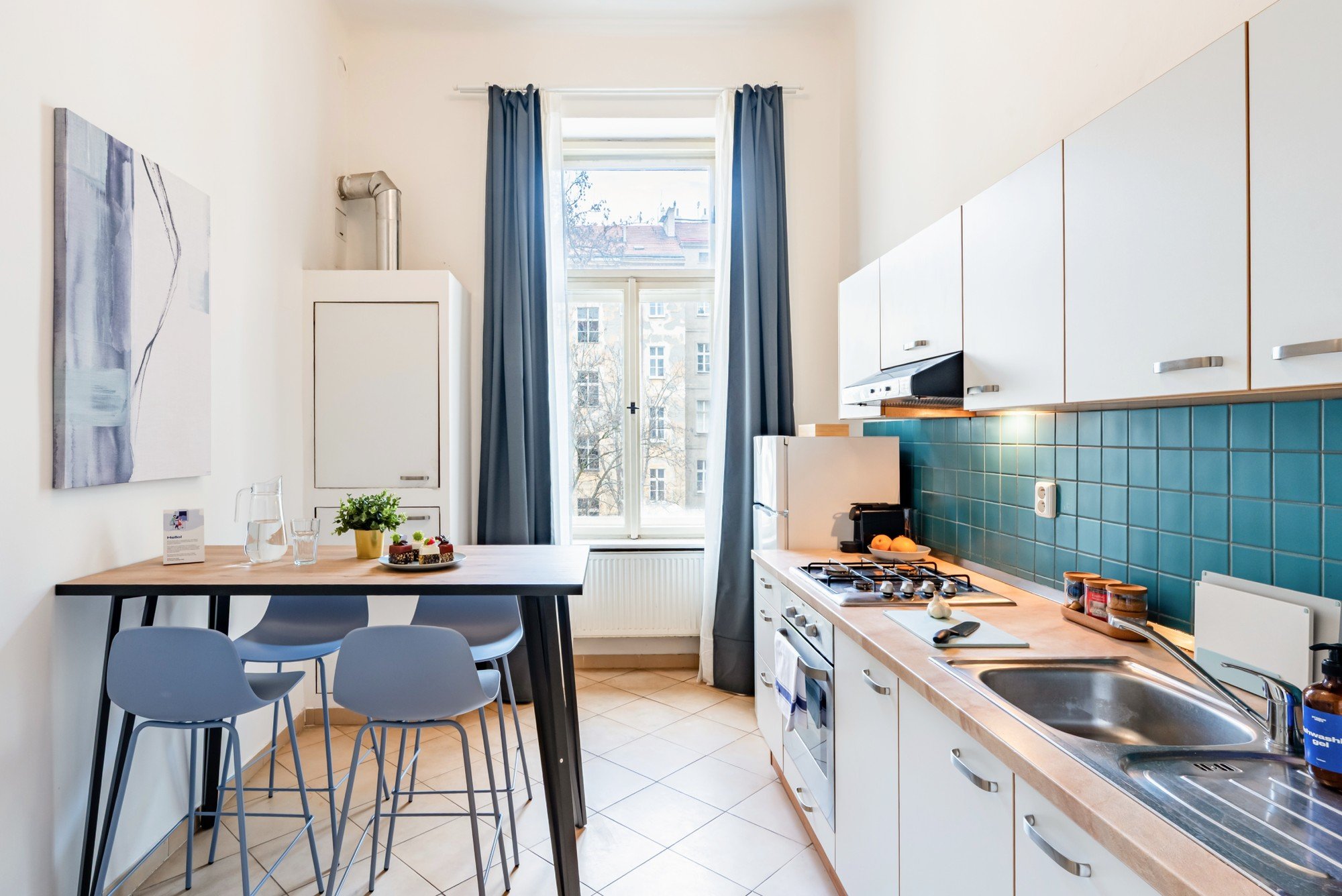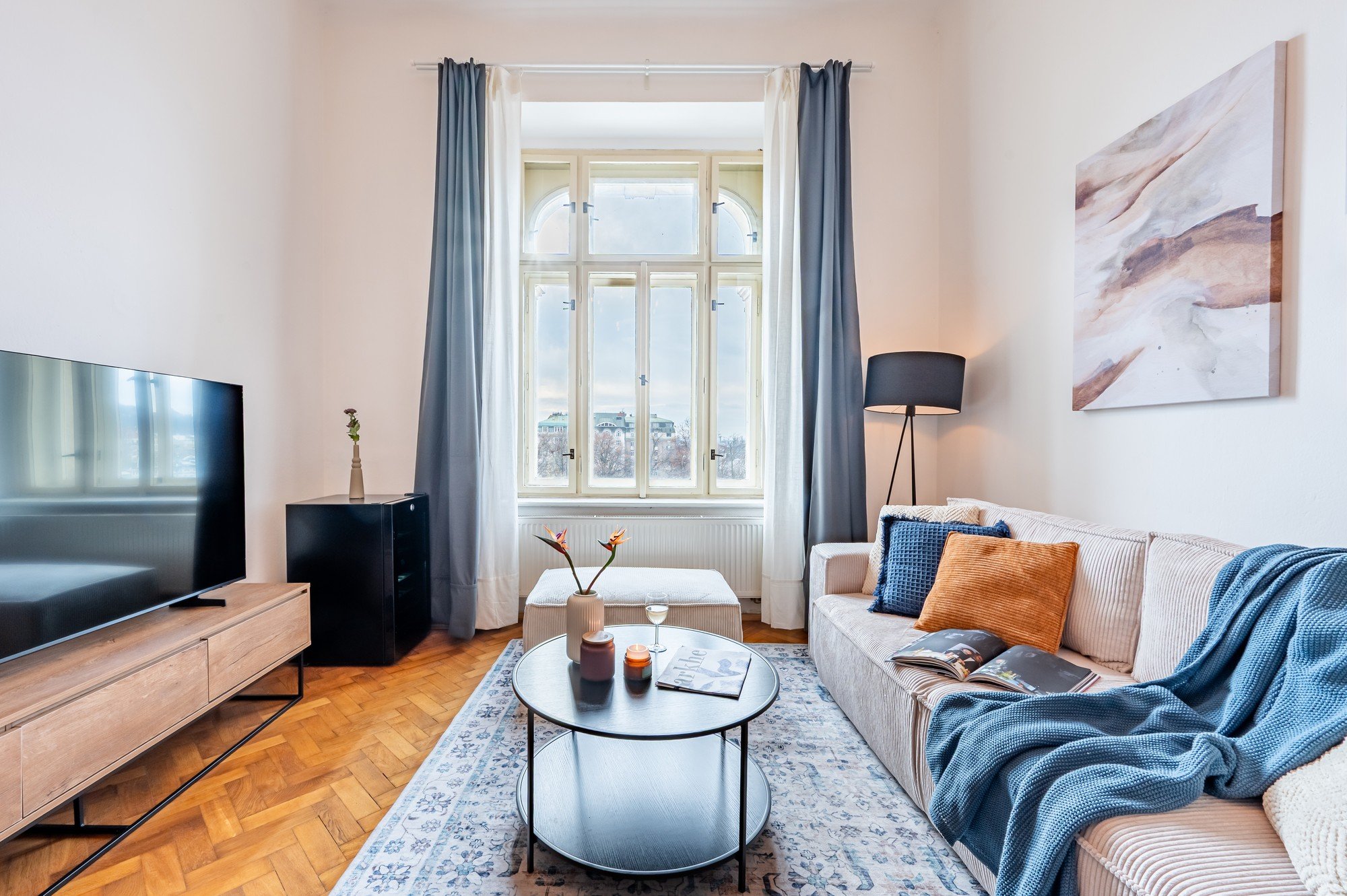 Просторният апартамент в историческа сграда съчетава щедри пропорции с добре обмислени детайли. Високите тавани, оригиналните паркети и контрастът между тъмното дърво и нежните нюанси на синьото създават вечен интериор, който е спокоен, елегантен и естествено уютен. Разположението, проектирано за ежедневието и общите моменти, доказва, че комфортът и характерът могат да вървят ръка за ръка.