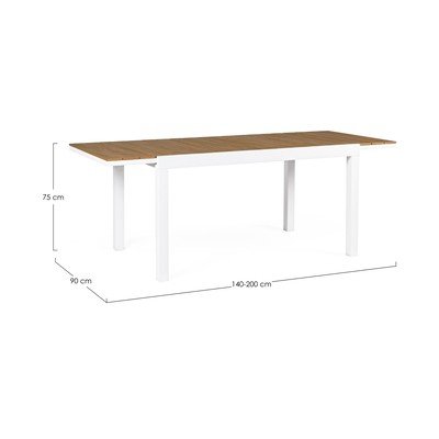 Алуминиевата градинска маса за хранене Elias от Bizzotto с масивна алуминиева конструкция в бяло е идеалният избор за сядане на открито. Плотът с имитация на дърво придава на масата Elias естествен вид. Практичната сгъваема конструкция ви позволява да увеличите ширината ѝ до 200 см, което ви осигурява достатъчно място за по-голяма компания с лекота.