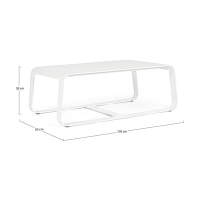 Алуминиевата градинска масичка Merrigan от Bizzotto внася непреходна елегантност във вътрешния двор. Минималистичният ѝ дизайн с изчистени линии и бяло покритие се съчетава лесно с различни стилове градински мебели. Масата с размери 62 x 105 cm осигурява достатъчно място за напитки и декорации и благодарение на издръжливата си алуминиева рамка ще ви служи в продължение на много сезони.