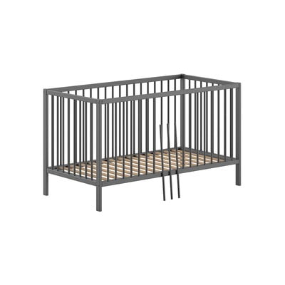 Детско креватче DINO70x140 cm, с подвижна странична част/с регулируема височина, с включена подматрачна рамка, от масивен бук, oбработка на повърхността: боя, антрацитно