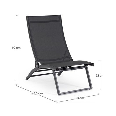 Градинският шезлонг Taylor от Bizzotto в антрацит е идеалният избор за почивка на терасата или в градината. Шезлонгът е изработен от издръжлив метал и дишаща материя. Сгъваемият му дизайн го прави лесен за съхранение.