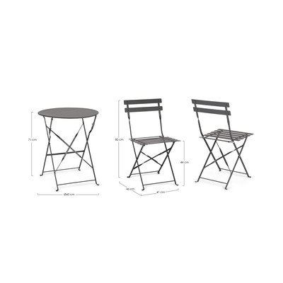 Комплектът за хранене Austin от Bizzotto е изработен от стомана и е идеален за сядане в градината, на балкона или на терасата. Комплектът се състои от една кръгла маса и два стола. Сгъваемият му дизайн го прави лесен за пренасяне и съхранение.