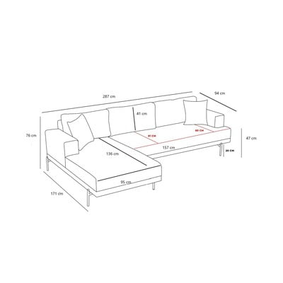 Десен ъгъл, антрацитен, четириместен, ширина 287 cm, дълбочина 171 cm, дълбочина на седалката 60 cm