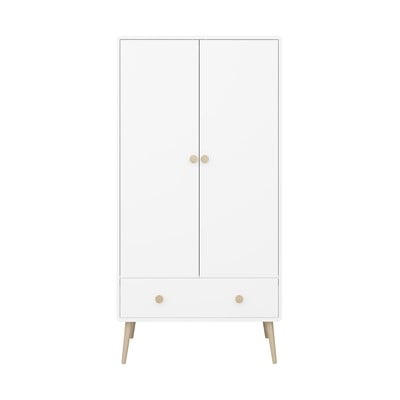 Гардероб с крака от дъбово дърво ще внесе скандинавски стил в детските стаи. Можете да допълните пространството за съхранение с рафтове