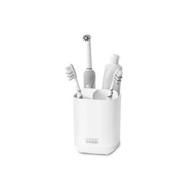 Този държач за четки за зъби не прави изключение, разделен на три различни секции, които осигуряват достатъчно място за обикновени и електрически четки за зъби и паста за зъби. Не само че се разглобява и почиства много лесно, но и има вентилационни отвори за бързо изсъхване.