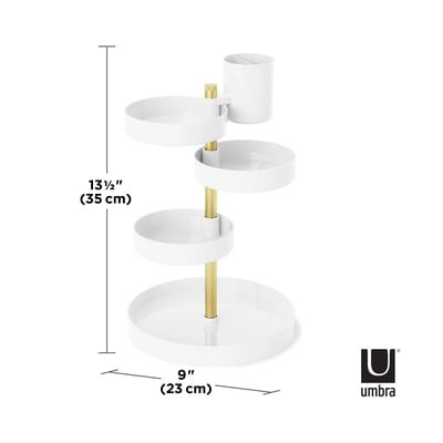 Благодарение на централната планка рафтовете на този органайзер Pirouette могат да се въртят удобно за лесен достъп до всички съхранявани козметични продукти.