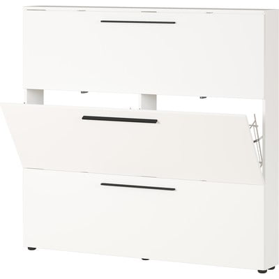 Стойка за обувки UtahНакланяща се, ПДЧ, oбработка на повърхността: меламин, декор от матирано дърво, бяла, ширина 140 cm, височина 129 cm, дълбочина 19 cm
