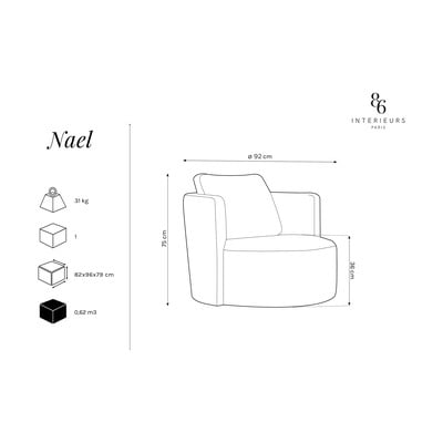 Подобрете интериора си с гамата Nael от Interieurs 86. Основата е структуриран плат тип "баункъл" с плътна плетка. Столът е изключително устойчив на износване, което намалява риска от повреда. Тъканта е сертифицирана по Oeko-Tex Standard 100 и гарантира, че е произведена без вредни за човешкото здраве химикали. Изглежда страхотно, особено в комбинация с пуфа от същата серия.