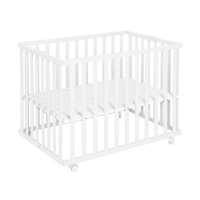 Благодарение на възможността за регулиране на височината в две различни степени, изваждането на бебето от тази кошара за игра от Roba е лесно за гърба ви. Благодарение на четирите колела можете лесно да я преместите там, където ви е необходима, а след това да я застопорите за по-голяма стабилност. А когато не я използвате, сгънете я и я приберете в гардероба с едно лесно движение.