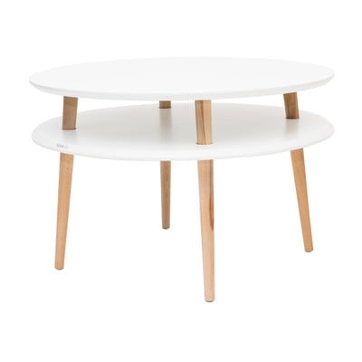 НЛО, това е маса, която е невероятно симпатична. Краката от букова дървесина контрастират добре със смело оцветения плот.