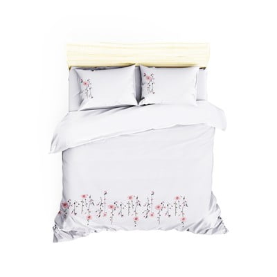 Спално бельо PerlaДвойно /удължено, с включен долен чаршаф, с копчета, луксозно, на цветя, бяло, 200x220 cm
