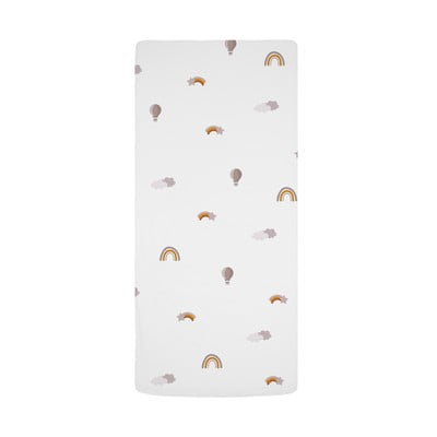 Детски чаршаф Balloon DreamingЕластичен, единичен, от памучен сатен, звезден, бял, 90x200 cm