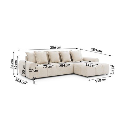 Десен ъгъл, бежов, водоустойчив/устойчив на петна, четириместен, ширина 306 cm