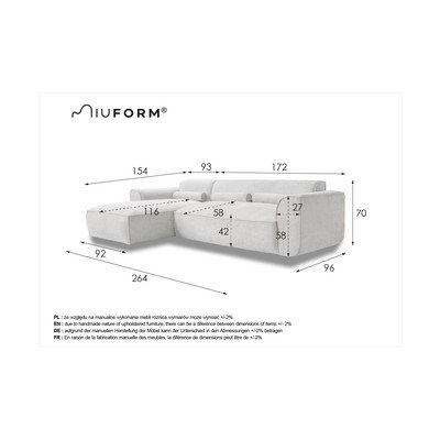 Ляв ъгълБежовТриместенШирина 264 cmДълбочина 154 cmДълбочина на седалката 58 cm