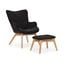 Черен фотьойл с табуретка от рипсено кадифе Niko – Ropez
