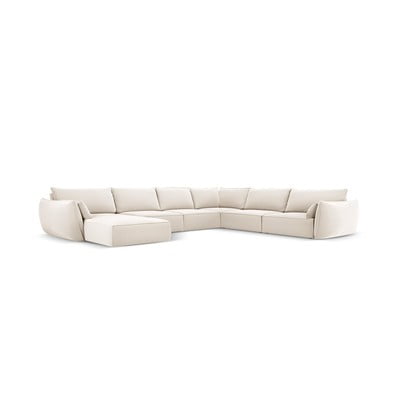 Бежов кадифен ъглов диван (ляв ъгъл/U форма) Vanda – Mazzini Sofas