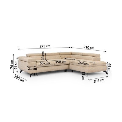 ШениловПозициониране/сгъваем/с място за съхранениеДесен ъгъл/L формаБежовПодходящ за домашни любимци/устойчив на петнаЧетириместенШирина 275 cm