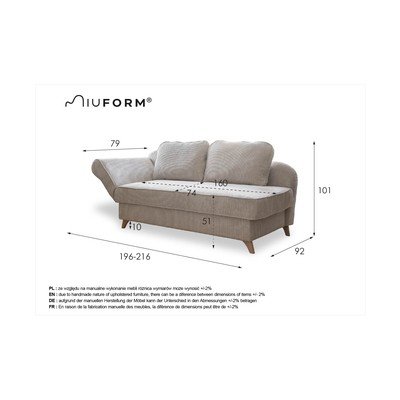 Ляв ъгъл, от рипсено кадифе, бежов, ширина 216 cm, дълбочина 92 cm, тегло 62 kg