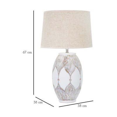 С текстилен абажур, от полирезин, за контакт, бяла/бежова, височина 67 cm