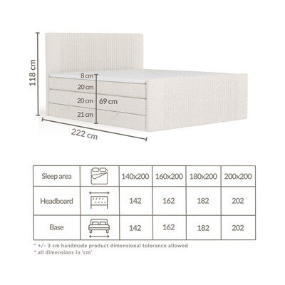 200x200 cmС място за съхранениеТапицираноС включен матрак/с включен топерРъчна изработка/лесно сглобяванеБежово