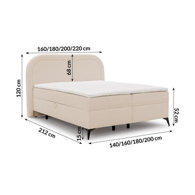 200x200 cm, с място за съхранение, тапицирано, с включен матрак/с включен топер, от прежда с примки от букле, бежово