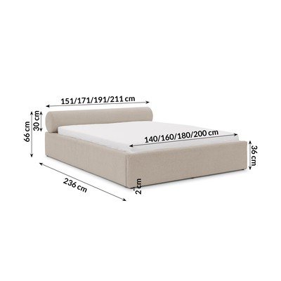 Кремаво двойно легло 200x200 cm тапицирано с място за съхранение с включена подматрачна рамка Cille – Ropez