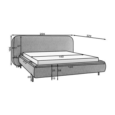 140x200 cm, с място за съхранение, с включена подматрачна рамка, тапицирано, от прежда с примки от букле, бежово