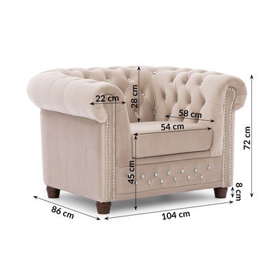 Бежово кадифено кресло честърфийлд York Blik – Ropez