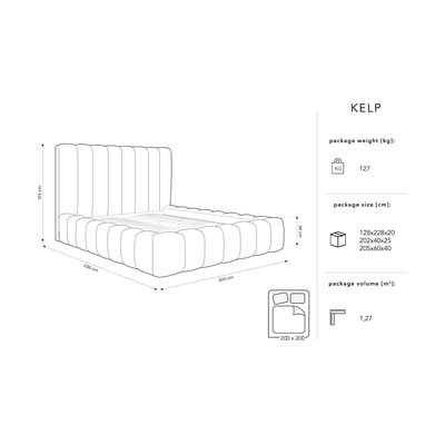 Оставете се да бъдете увлечени от красотата и елегантността на легло Kelp от Micadoni Home. От пръв поглед ще ви направи впечатление плътното ватиране на таблата и целия периметър. Мека и приятна на допир, материята е изключително устойчива на протриване, което намалява риска от повреда. Благодарение на пълнежа от пяна таблата е удобна и за гърба ви. Горният ѝ ръб има леко вълнообразен контур, маркиран от вертикални шевове. Под ламелите ще откриете и място за съхранение на спалното бельо. Леглото Kelp ще създаде топла и уютна атмосфера в спалнята ви. То ще се съчетае най-добре с интериори в бляскав и модерен стил.