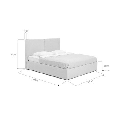 Дизайнерско тапицирано легло с практично пространство за съхранение, накланяща се ламелна скара и удобна тапицирана табла. Изключително лесният монтаж, висококачествените, издръжливи материали и високата товароносимост го правят идеален избор за ежедневен комфорт и стилен интериор.