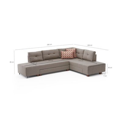 Сгъваем, десен ъгъл/L форма, устойчив на петна, бежов, други, ширина 280 cm, дълбочина 206 cm, дълбочина на седалката 63 cm