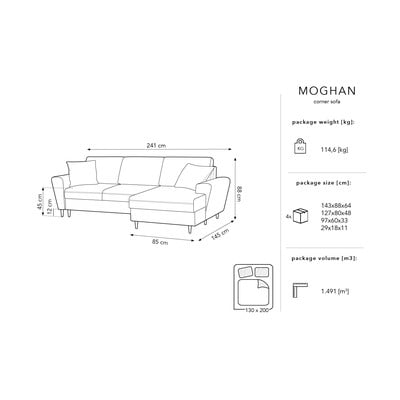 С дивана Moghan от Micadoni Home е лесно да се влюбите в красотата на скандинавския стил. Повърхността е от матирана текстурирана тъкан с тесни 3 мм ивици. Благодарение на хидрофобното покритие течностите няма да се просмучат в дивана. Освен това е изключително устойчив на износване. Освен това има сертификат Oeko Tex, който гарантира здравна безопасност без вредни химикали и свежда до минимум въздействието на производствения процес върху околната среда.
