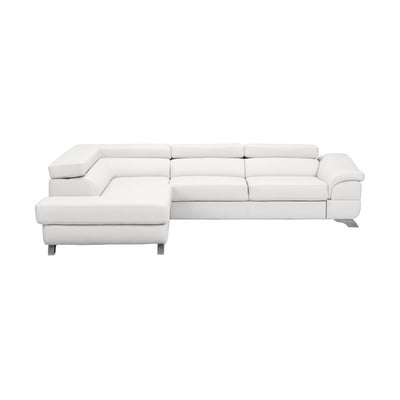 Кожен, позициониране/сгъваем/с място за съхранение, ляв ъгъл, бял, триместен, ширина 272 cm, дълбочина 85 cm, дълбочина на седалката 57 cm