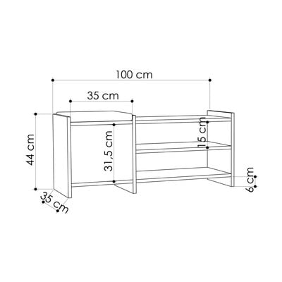 За сядане, от МДФ, oбработка на повърхността: меламин, бяла, брой чифтове обувки 10 , ширина 100 cm, височина 44 cm, дълбочина 35 cm