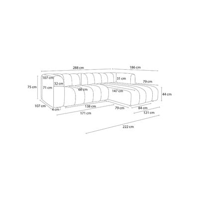 Десен ъгъл, бял, четириместен, ширина 288 cm, дълбочина 186 cm, дълбочина на седалката 68 cm