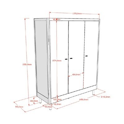 От масивен бук, oбработка на повърхността: боя, бял, ширина 146 cm, височина 190 cm, дълбочина 55 cm