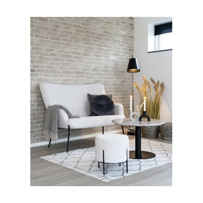 Двуместният диван Glasgow от House Nordic с елегантна тапицерия от букле в бяло с черни метални крака ще придаде модерен и уютен вид на вашия интериор.