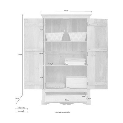 От масивно манго, oбработка на повърхността: лак, бял, ширина 100 cm, височина 175 cm, дълбочина 40 cm