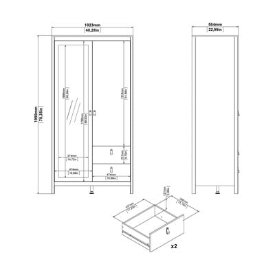 С огледалоПДЧOбработка на повърхността: фолиоДекор от матирано дървоБялШирина 102 cmВисочина 199 cmДълбочина 58 cm