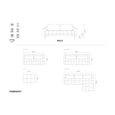 Светлосин кадифен диван 238 cm Nalu – Makamii