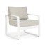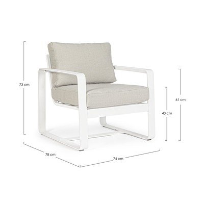 Градинският фотьойл Merrigan от бял метал на Bizzotto ще внесе модерна елегантност в екстериора ви. Със семпъл геометричен дизайн, фотьойлът е изработен от метал и е допълнен от удобни бежови възглавници. Неутралната цветова комбинация от бяло и бежово изглежда непреходна и лесно може да се съчетае с други градински мебели и аксесоари.