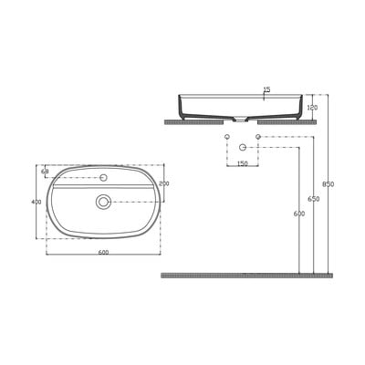 Керамична, бяла, ширина 60 cm, дълбочина 40 cm, височина 12 cm