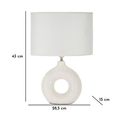 С текстилен абажур, керамична, за контакт, бяла, височина 43 cm