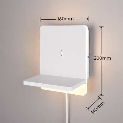 LED, с USB порт/затъмняваща се/с рафт, за контакт, метална, бяла, височина 20 cm