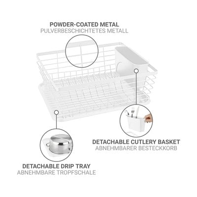 Отцедникът за чинии от Wenko е практичен помощник за всяка кухня. Той има поставка за чинии, място за купи и чаши.