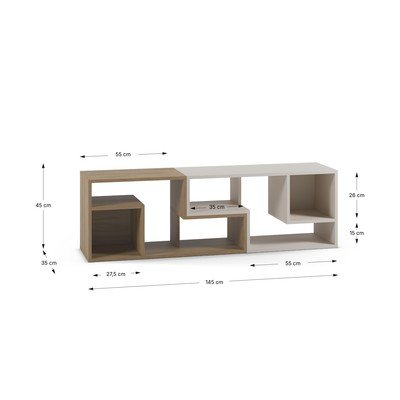 ЪгловаОт декор от дъб ПДЧOбработка на повърхността: меламинБяла/в естествен цвятШирина 145 cmВисочина 45 cmДълбочина 35 cm
