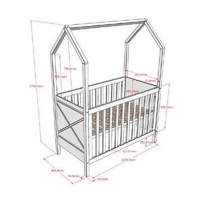 60x120 cm, с регулируема височина, с включена подматрачна рамка, от масивен бор, oбработка на повърхността: боя, бяло