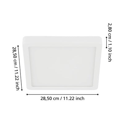 LED, с пластмасов абажур, метално/пластмасово, бяло, 28,5x28,5 cm, височина 3 cm