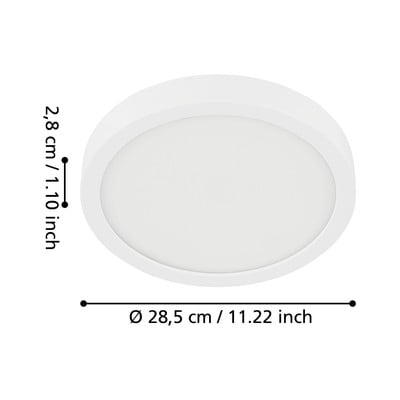 LED, с пластмасов абажур, метално/пластмасово, бяло, ø 28,5 cm, височина 3 cm