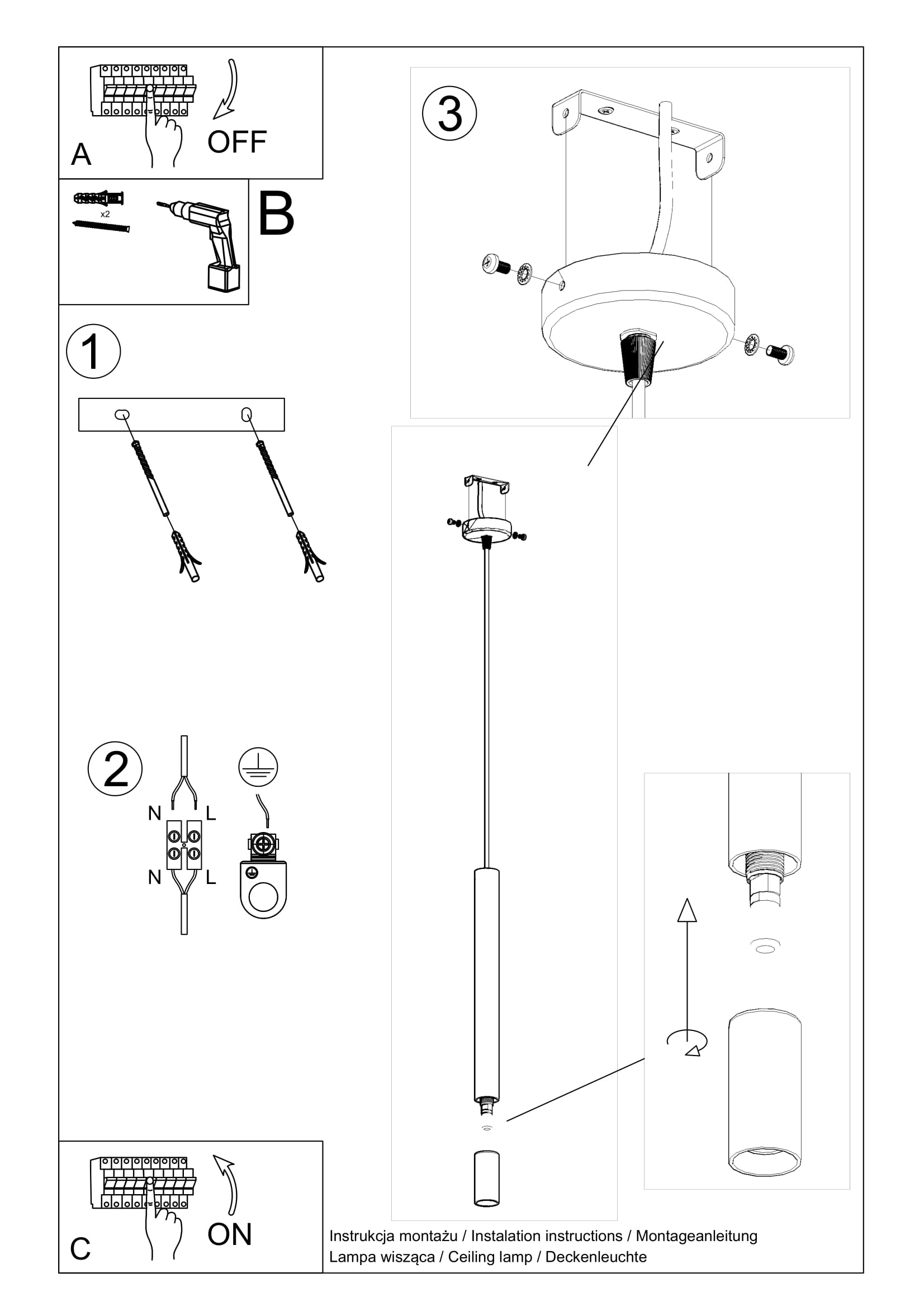 Черно метално висящо осветително тяло ø 8 cm Vittoria – Sollux